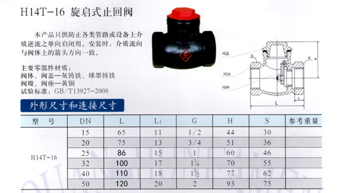 H14T-16 旋啟式止回閥